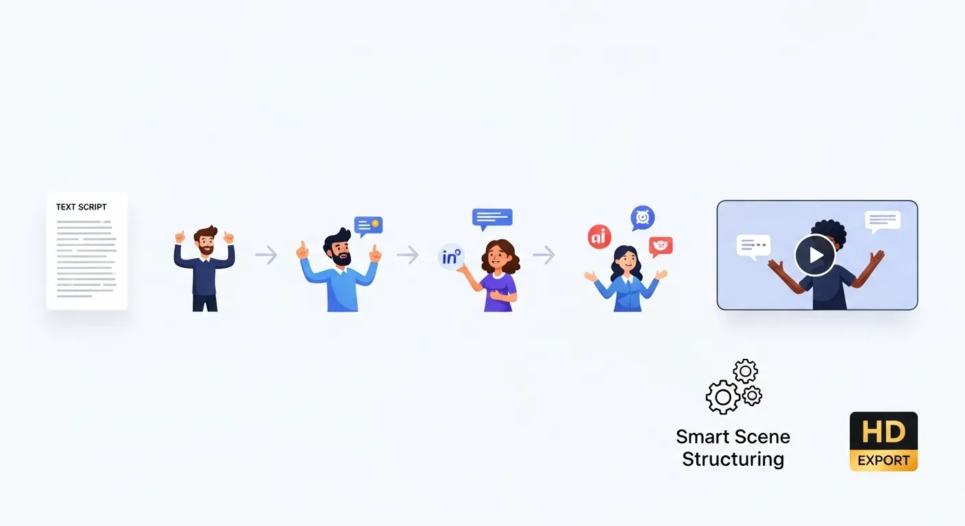 AI extracts key points from articles and scripts to create concise marketing videos.
